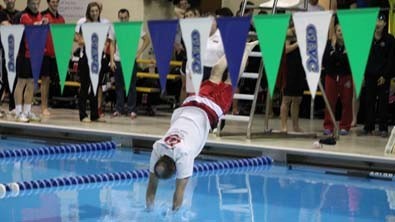 In fact, Mayor Barton displayed that support on the opening night of the GLVC Championships, welcoming a near-capacity crowd to his beloved town before taking a ceremonial dive off the 3-meter board. He remained in attendance throughout the week, donning the white GLVC Swimming and Diving shirt that all 202 community volunteers wore while assisting with the event.