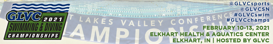 The Great Lakes Valley Conference is set to host the eighth annual GLVC Men's and Women's Swimming & Diving Championships, Feb. 10-13, 2021, at the Elkhart Health & Aquatics Center in Elkhart, Indiana, for the very first time.